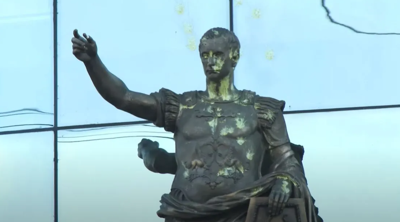 В российском городе городе Санкт-Петербург из пейнтбольного ружья обстреляли статую президента РФ Владимира Путина в образе императора Октавиана Августа.