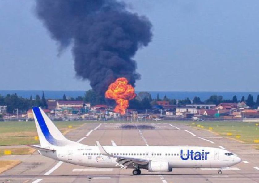Над международным аэропортом Сочи утром 20 августа поднялся густой черный дым, виден огонь.