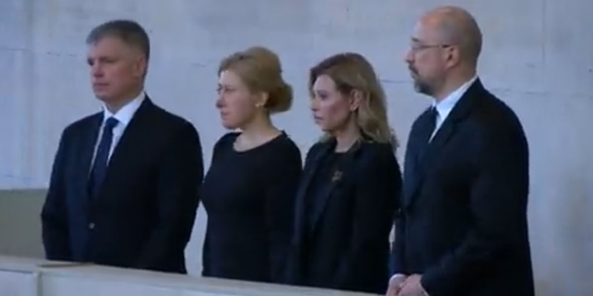 Издание Royal Central опубликовало видео, на котором Денис Шмыгаль, Елена Зеленская и посол Украины Вадим Пристайко с женой Инной отдают дань уважения королеве в Вестминстерском дворце.