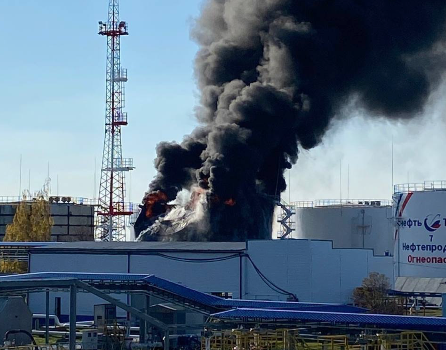 Позже губернатор региона Вячеслав Гладков подтвердил информацию о "прилете" в нефтебазу