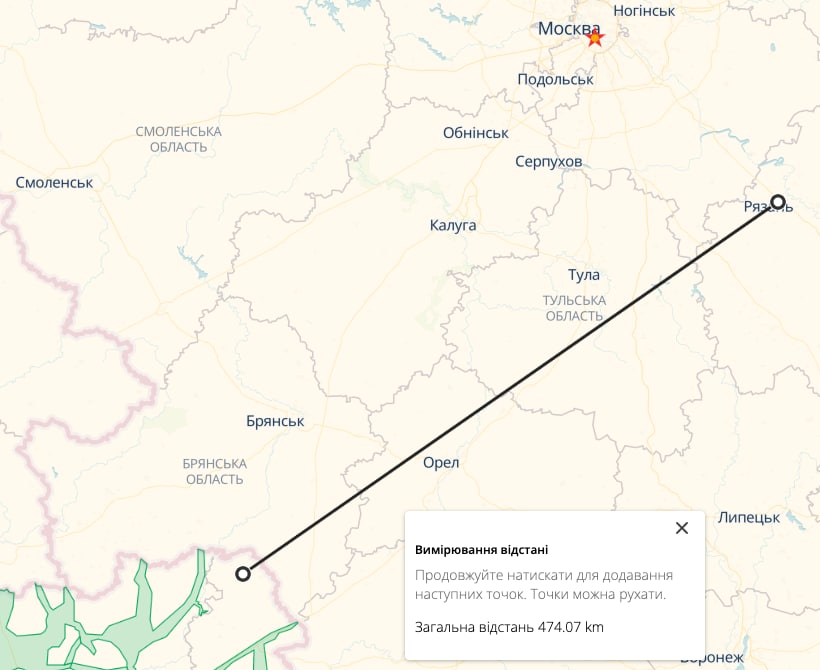 Аэродром "Дягилево" находится примерно 470 км от Украины.