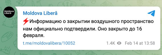 "Уважаемые пассажиры, на данный момент воздушное пространство республики Молдова закрыты, ждем возобновления рейсов", - сообщили в компании.