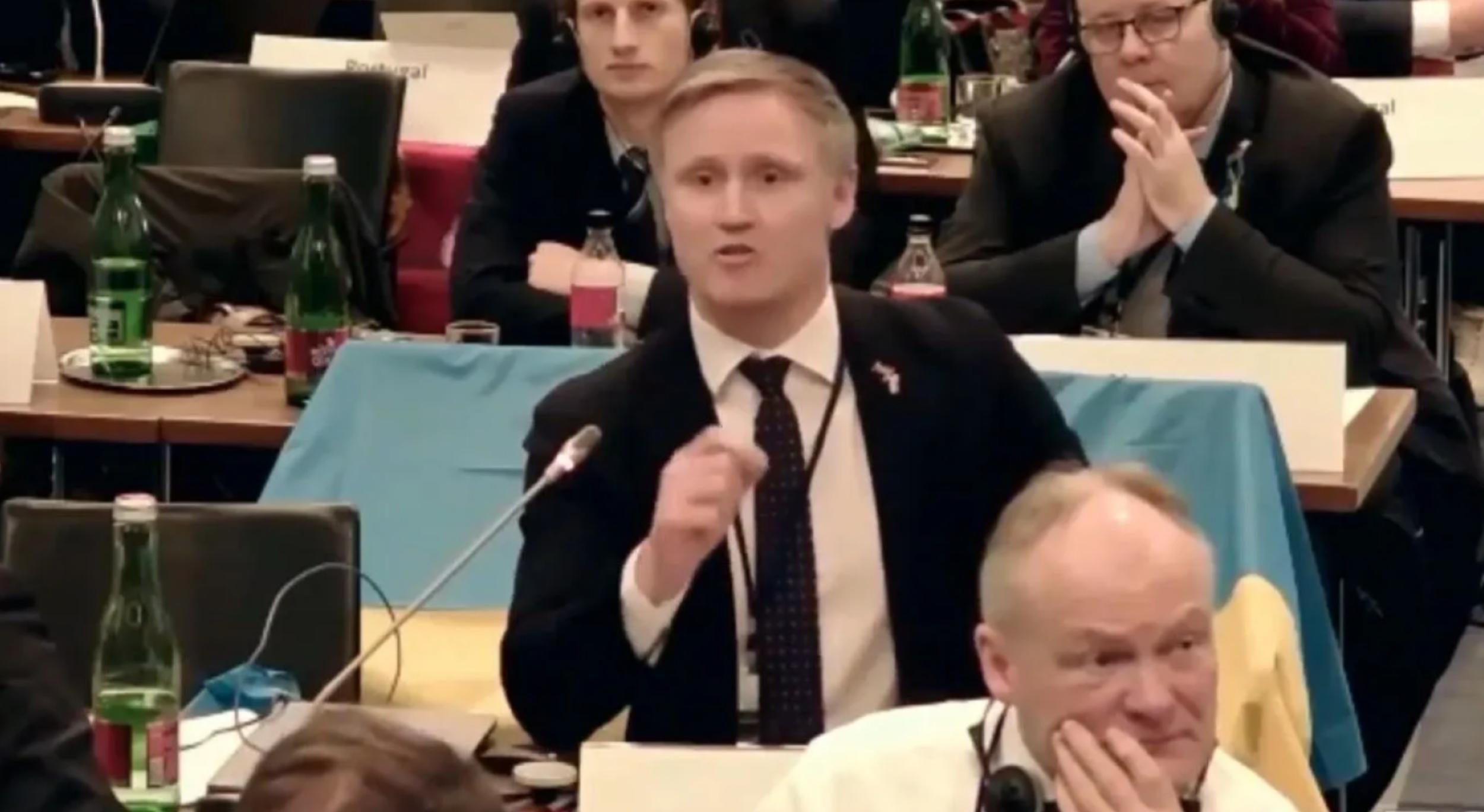 Выступление Главы комиссии Сейма Латвии по иностранным делам вызвало небывалое возмущение россиян, потребовавших "выйти из зала всех, кто против России, вместе со своими украинскими флагами".
