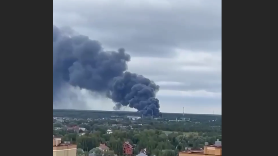 Сегодня 13 августа в российском городе Раменское произошел сильный пожар. Огромный столб черного дыма поднимается со стороны промзоны "Полигон" на Донинском шоссе.