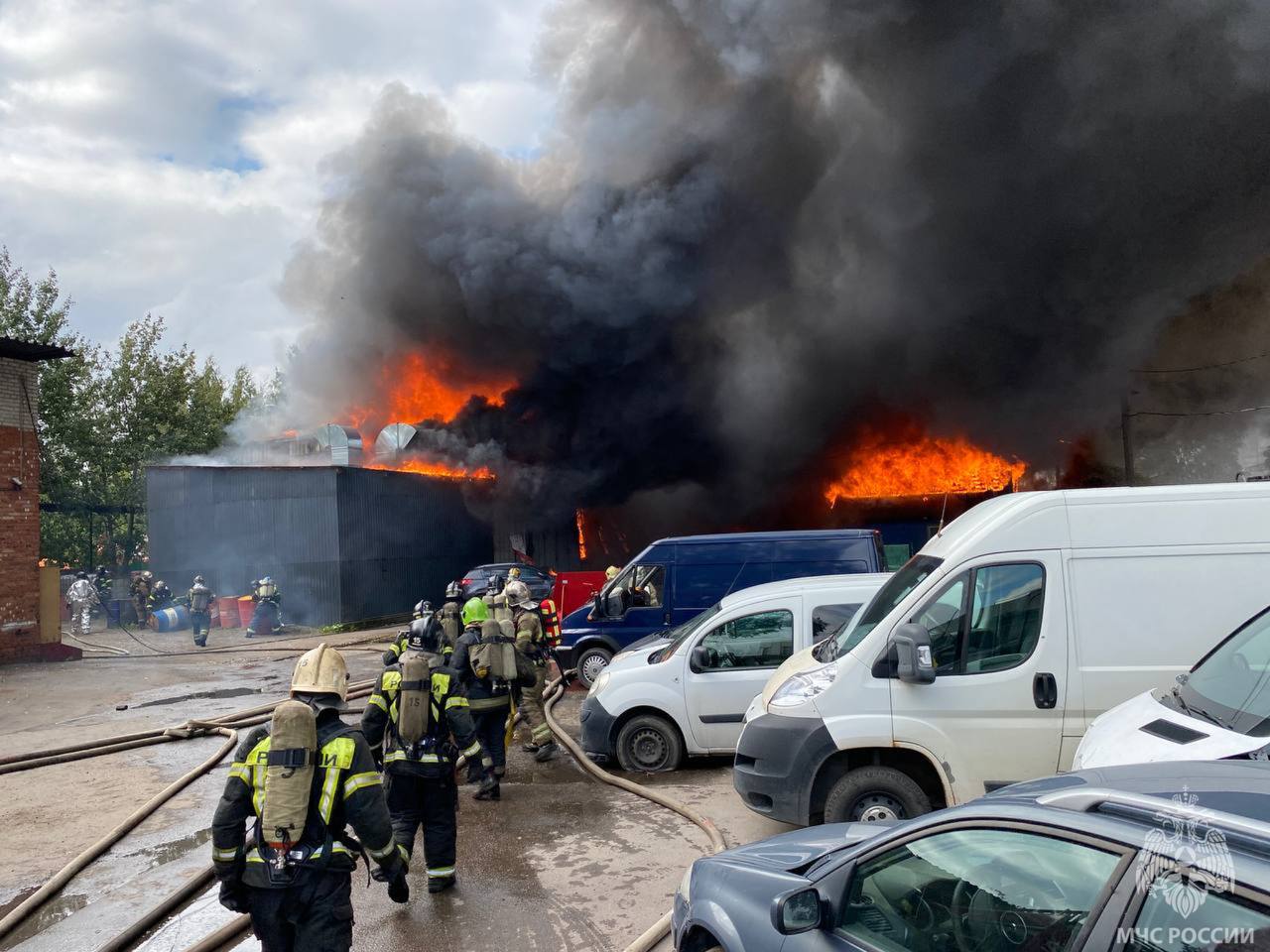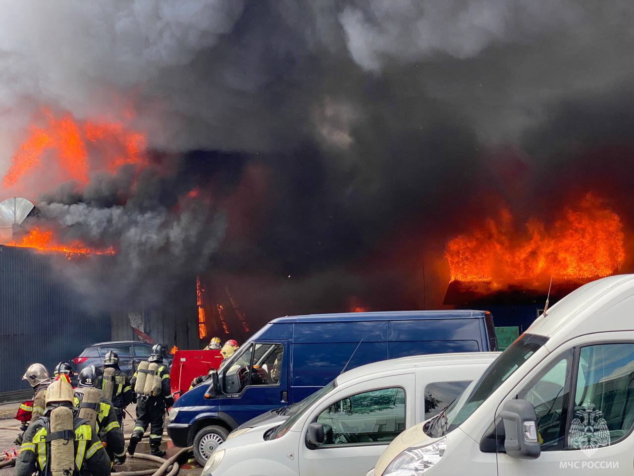 Также отмечается, что в ангаре хранили газовые баллоны и бензин. По словам очевидцев, накануне пожара раздались звуки взрывов.