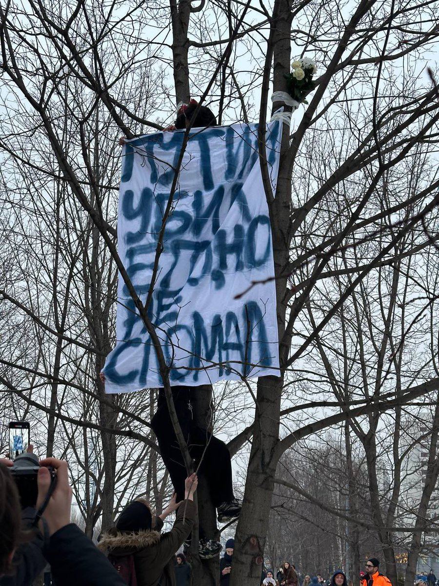 После отпевания, которое заняло менее 20 минут, процессия двинулась к кладбищу, но полицейские на некоторое время заблокировали катафалк с телом Навального, после чего люди, которые пришли следом, начали скандировать "Россия без Путина", "Нет войне" и "Любовь сильнее страха".