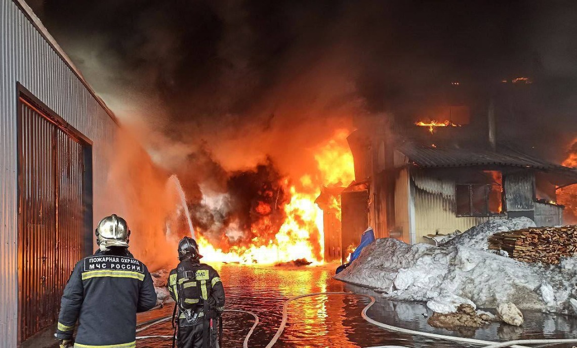 В Московской области РФ произошел очередной масштабный пожар. Огонь охватил территорию производственно-складского комплекса со стройматериалами.