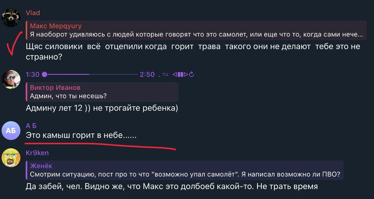 Кроме этого на опубликованных видео и фото видно, что поднимается столб темного дыма. Также жители города сообщают, что видели в небе след от полета самолета, однако сам самолет не было видно.