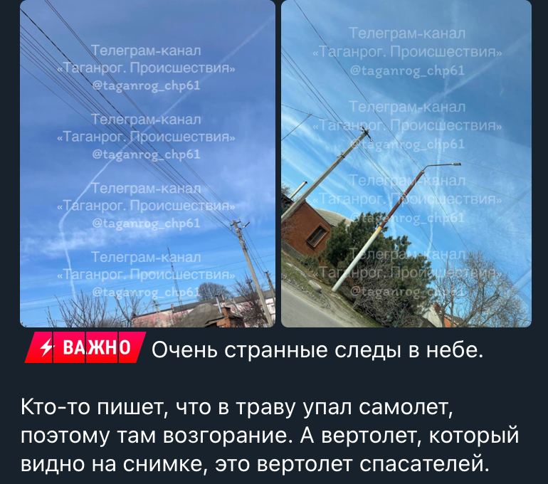 21 марта, в небе Таганрога появились странные следы. В социальных сетях обсуждают возможное падение российского самолета, однако эта версия еще не подтверждена.