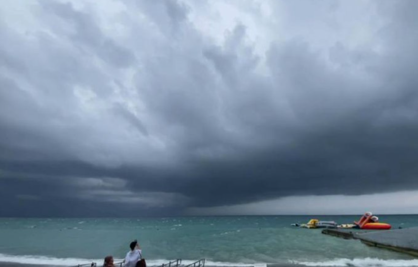 Очевидцы опубликовали в сеть видео, на которых видно, как над городом нависли огромные тучи, а люди массово покидают пляжи.
