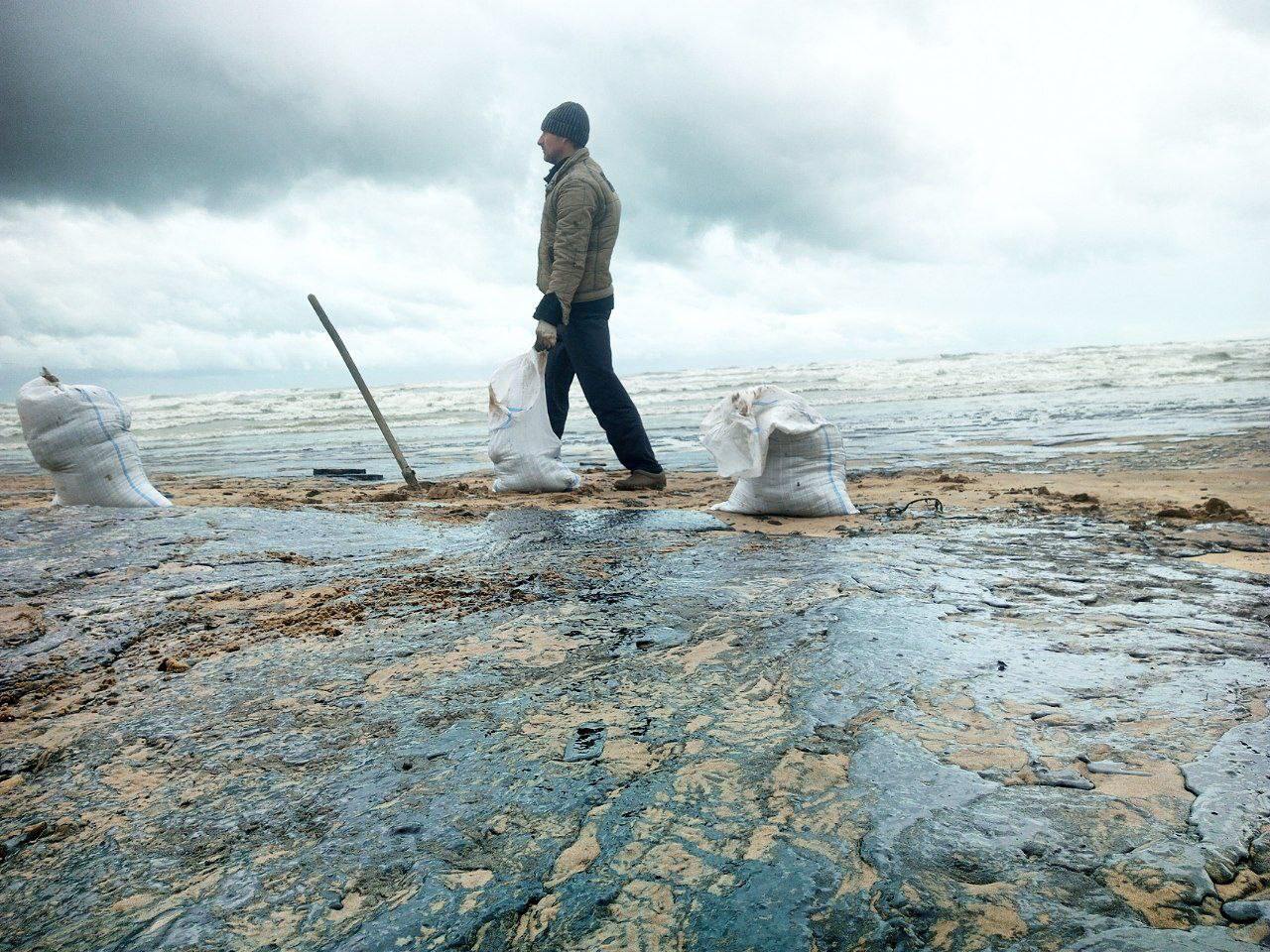 Мазут убирают в мешки, но, по словам волонтеров, уборка идет с трудом: нефтепродукты быстро разъедают пластик мешков, да и порой волны уносят их обратно. В магазинах раскупили почти все лопаты.