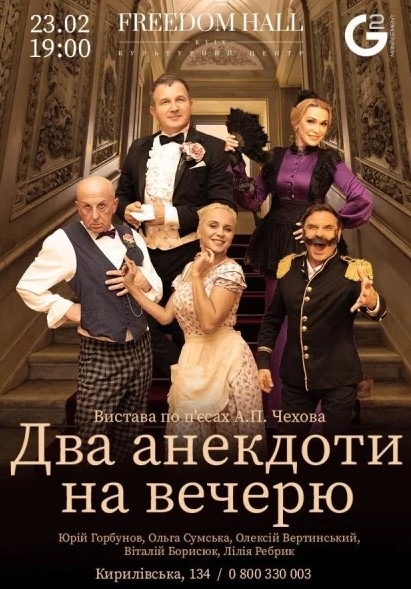 Спектакль состоит из двух отделений с антрактом, в каждом из которых будет отдельная законченная история. Обе они основаны на произведениях Антона Чехова: «Медведь» и «Предложение». Вы перенесетесь в эпоху, когда жил и творил великий классик. Декорации и костюмы еще больше погрузят вас в атмосферу того времени, чтобы вам было легче понять мотивацию тех или иных поступков главных героев.