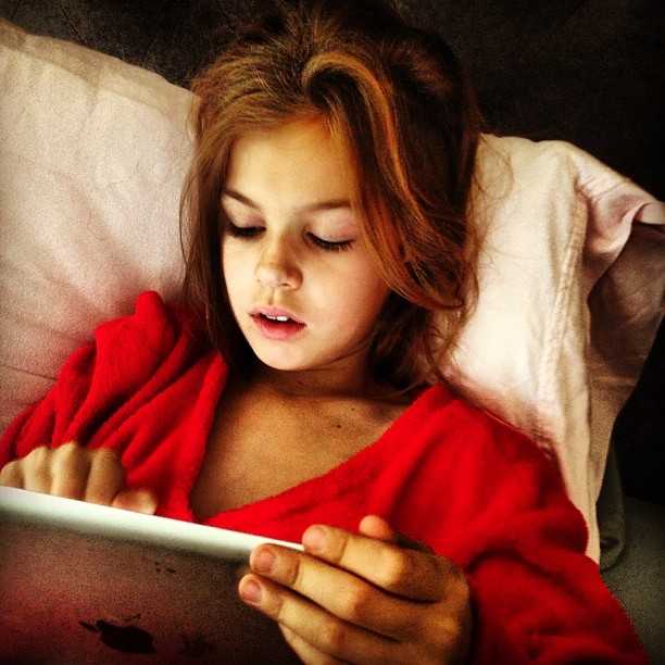 Сегодня в микроблоге в Instagram Анна опубликовала снимок 9-летней Алины (которая, как известно, любит копировать откровенные мамины наряды). На фото девочка лежит на подушке в красном халате и с большим вниманием смотрит в планшет. «Маленькая я!» - прокомментировала кадр Седокова.