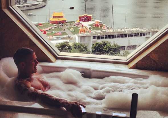 В день рождения Фомин разместил в микроблоге Instagram фотографию из отеля в Сингапуре. На фото именинник принимает ванну. В роскошном номере одной из гостиниц-небоскребов в ванной комнате есть огромное панорамное окно, из которого открывается прекрасный вид на город.