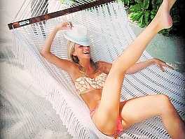 На днях девушка опубликовала смелый снимок, где игриво задирает ногу в гамаке, подписав его:
