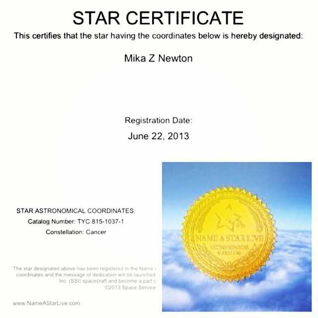 Теперь именем популярной певицы Мики Ньютон называется звезда в небе. Об этом певица рассказала в своей социальной сети и поделилась снимком созвездия.