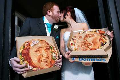 Молодожены из Англии заказали на свою свадьбу пиццы с их собственными портретами, выполненными из томатного пюре, ветчины и сладкой кукурузы, пишет The Daily Mail. Для этого Киран и Наташа Моррис перед свадьбой обратились в свою любимую службу доставки пиццы.