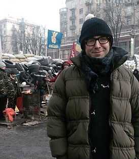Фотографией с баррикад он поделился в своем микроблоге в Twitter. На снимке ведущий, одетый в теплую куртку и шапку, стоит на фоне флагов и «гор», сооруженных из автомобильных шин и мешков со снегом. А позади Андрея стоят бастующие, разжигающие огонь.
