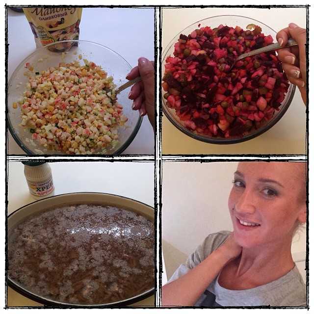 Для Димы она обожает готовить разные блюда, особенно салатики. «К приезду мужа готова!!! Любимый, дома тебя ждут: крабовый салат, винегрет, мамин холодец, запеканка, и самое главное…» - написала она и разместила снимок.
