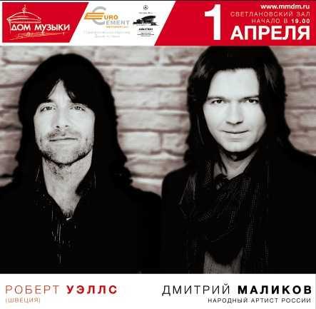1 апреля в Московском Международном Доме Музыки пройдёт концерт Дмитрия Маликова вместе с известным шведским пианистом Робертом Уэллсом. Об этой новости сообщили в PR службе компании "Первое музыкальное Издательство".