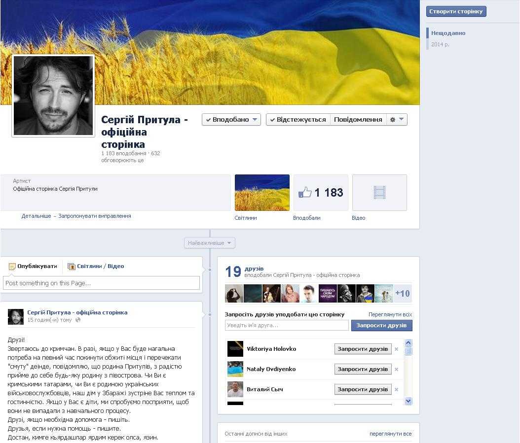 Официальная страница Сергея Притулы в Facebook – https://www.facebook.com/serhiyprytula