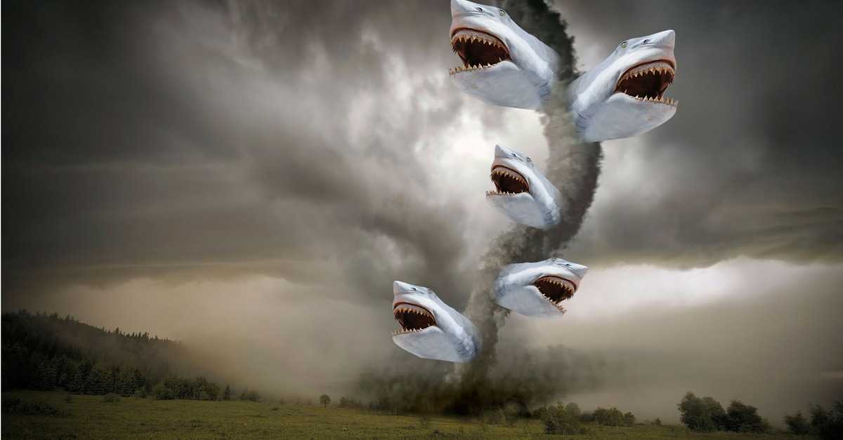 Отдельным пунктом упоминается вихрь из акул, обрушившийся на Лос-Анджелес в телефильме «Акулий торнадо» («Sharknado»). Сейчас в работе находится вторая серия этой картины — ее премьера запланирована на лето 2014 года.