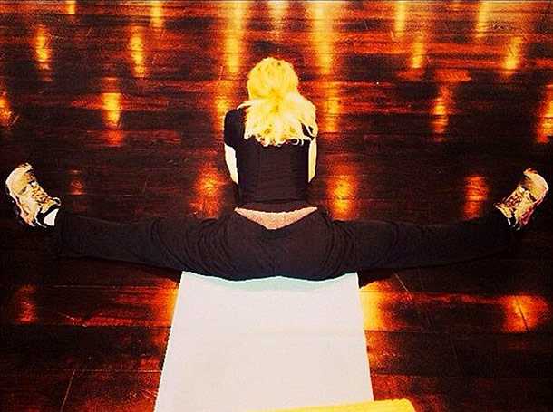 "Сегодня я растянулась, словно шкурка отделилась от банана!" - подписала фотографию Мадонна.