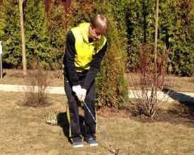 Чемпион выложил в своем микроблоге фотографию, на которой он на свежем воздухе играет в гольф.
