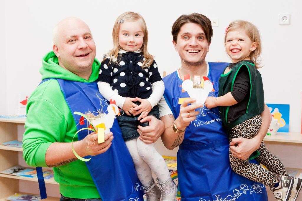 В преддверии пасхальных праздников ведущий программы «Сніданок з 1+1» Анатолий Анатолич пригласил Сергея Галибина с дочкой Марией на пасхальный мастер-класс в детский сад Clever Kids, в котором учится дочь Анатолича.