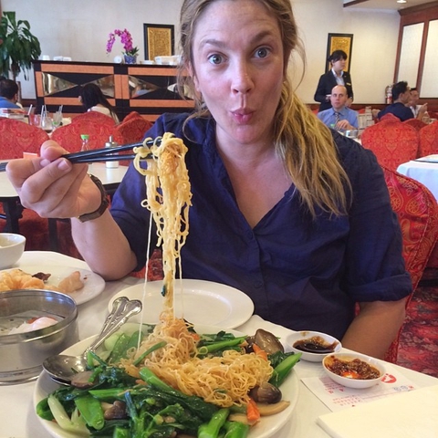 Беременная Дрю Бэрримор ждет второго ребенка. В блоге звезды появилось несколько снимков Дрю из ресторана, на которых видно множество далеко не маленьких порций.