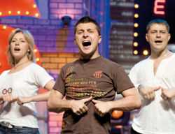Зрители в свою очередь проявили шуточную сцену, подарив исполнителям повестку в военкомат, стеклянные банки с салом и армейский шампунь.