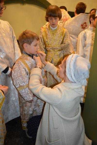 В канун величайшего христианского праздника, батюшка благословил мальчика на служение в алтаре храма. Теперь малец, который около года посещает воскресную школу при Ильинской церкви на Подоле, помогает священнику и участвует богослужениях.