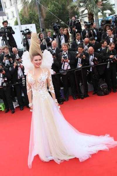 Самая ожидаемая фотографами Каннского кинофестиваля знаменитая своими стилистическими эпатажами россиянка Лена Ленина наконец-то доехала на второй день фестиваля до легендарной красной лестницы.