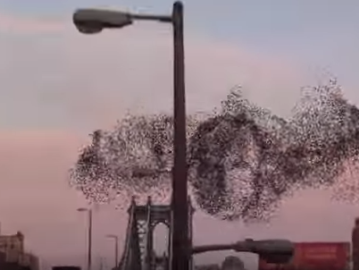 Пользователям интернета в США удалось заснять на видео полет стаи птиц в небе над Нью-Йорком. На несколько мгновений птицы образовали в небе фигуру, похожую на лицо человека.