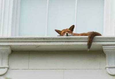 Жители лондонского района Ноттинг-Хилл были удивлены, увидев на подоконнике второго этажа одного из домов лисицу, которая мило спала.