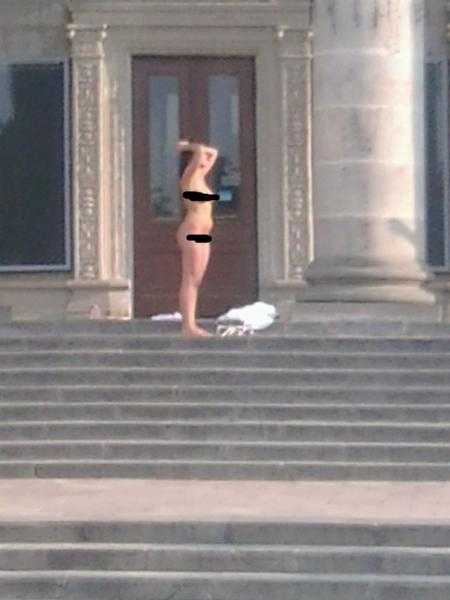 Вчера утром горожане увидели в центре города голую женщину. Возле драмтеатра ее удалось зафиксировать на фото. Очевидцы, впрочем, не рискнули спросить почем она раздета.