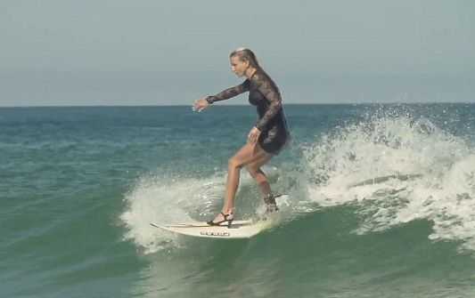 23-летняя француженка опубликовала на своей странице в социальной сети Facebook видеоролик, в котором катается по волнам в маленьком черном платье и туфлях на каблуках. Таким образом спортсменка решила доказать, что во время катания по волнам серферы могут выглядеть сексуально, пишет Daily Mail.