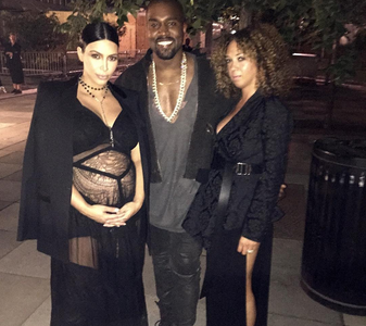 На снимке видно, что Ким Кардашьян решила одеть на мероприятие черное полупрозрачное платье, подчеркивающее ее беременный живот.