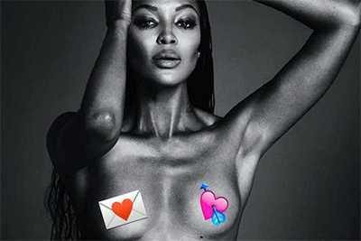 Соски Наоми Кэмпбелл закрыли забавными картинками. Поклонники звезды все же могут увидеть все прелести Кэмпбелл на новом, уже ставшем скандальным, снимке. Изображение является частью профессиональной фотосессии манекенщицы для ее новой книги и размещено в оригинальном виде также в журнале Garage и других интернет-изданиях.