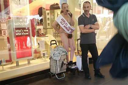 Пожилая жительница Великобритании приклеила себя за ягодицы к витрине лондонского универмага Debenhams, чтобы выразить протест политике властей по отношению к мигрантам, сообщает The Daily Mail. Для своей одиночной акции 54-летняя Кэй Бишоп надела бюстгальтер телесного цвета, меркин (лобковый парик) и ленту с надписью «Самая злая старуха в мире».