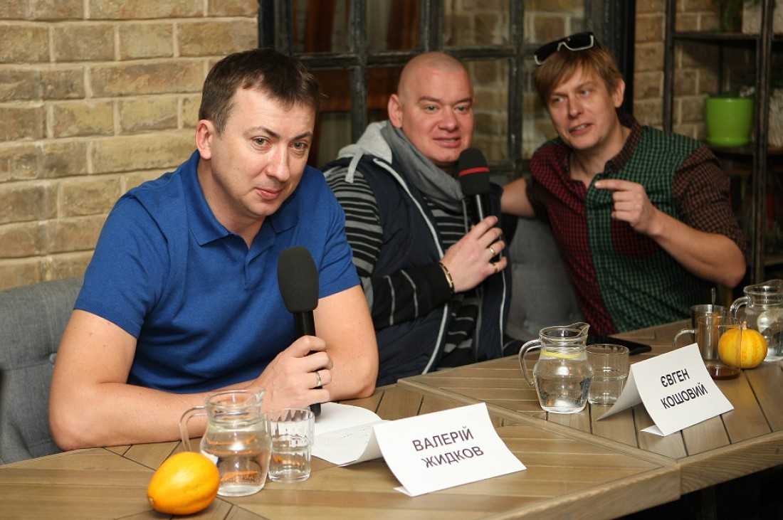 Валерий Жидков, Евгений Кошевой и Сергей Казанин (“Степан“) в неформальной обстановке рассказали, чего ждать от Вечернего Киева в новом сезоне. Как всегда, без шуток презентация артистов Студии Квартал 95 не обошлась.