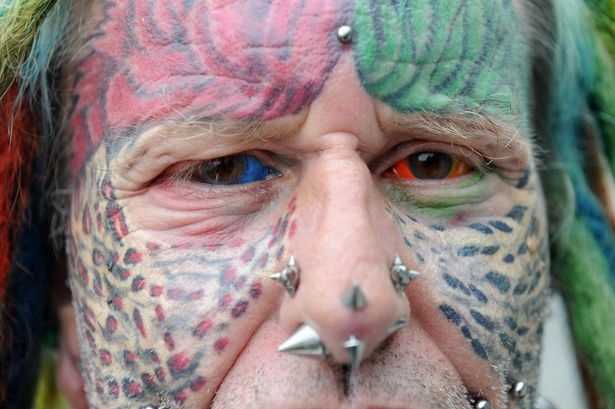 Ранее житель Британии работал на обувной фабрике. Свою первую татуировку он сделал в 1976 году и с тех пор пытается закрасить все свое тело. Также он выжег на своем левом плече знак мира и имплантировал металлические пластины в обе руки.