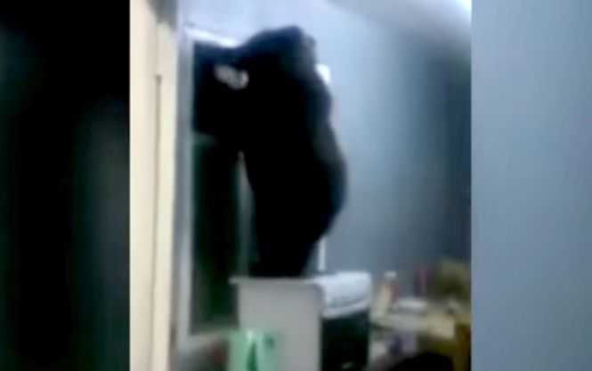 В Сети опубликовали видео с медвежонком, застрявшим в окне частного дома на Камчатке. Ролик сняли хозяева, которые, вернувшись домой, застали на кухне незваного гостя.