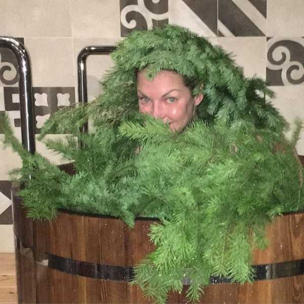 Дело в том, что по традиции звезда вновь опубликовала фото, сделанное в бане. Только на этот раз свое голое тело 40-летняя звезда прикрыла елками. Также забавным было фото, где красотка сидит в бочке.