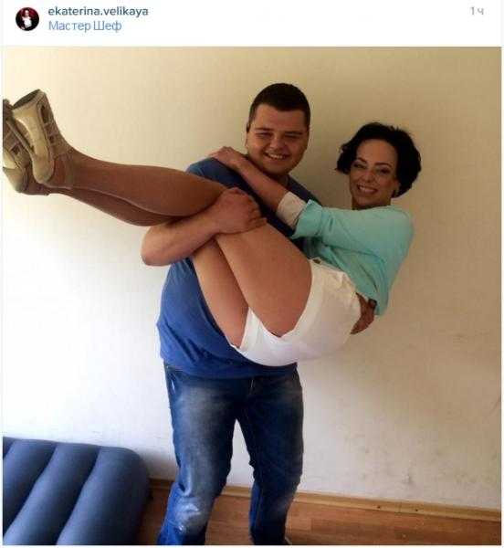 В своем instagram она в очередной раз продемонстрировала стройную фигуру и длинные ноги в весьма необычной позе. Дело в том, что счастливая Катерина запечатлена на руках у 19-летнего участника шоу из Одессы Дениса Елинчака.