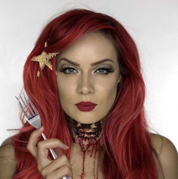 Художник по мейк-апу Шона Скотт благодаря макияжу "скрестила" известных принцесс из мультфильмов со страшными зомби.