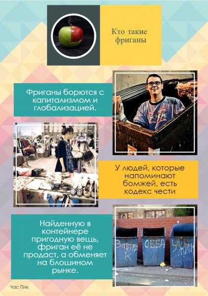 Эти люди принципиально не работают в торговых фирмах, так как считают себя соучастниками избыточного производства товаров и услуг. Проще говоря, фриганы борются с капитализмом и глобализацией.
