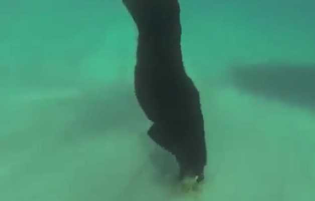 По команде хозяина лабрадорша Лила смело погружается на самое дно. Там она перехватывает лобстеров и приносит их мужчине, который за хорошую работу награждает любимицу аплодисментами.