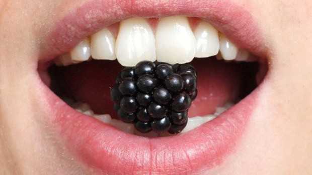 Черника, ежевика, вишня и другие яркие ягоды могут привести к окрашиванию зубов. Специалисты советуют выбирать ягоды и фрукты, которые не пачкают руки при их употреблении, например, крыжовник, яблоки, зеленый виноград и бананы. Стоит отметить, что клубника естественным образом отбеливает зубы, но не стоит забывать о кислотности данных плодов, которая может разрушать зубную эмаль и временно размягчать зубы.