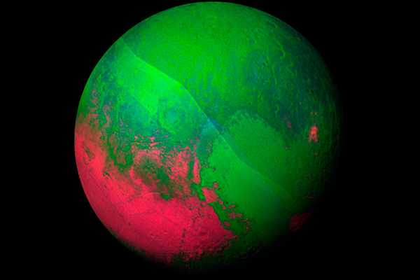 Американское аэрокосмическое агентство (NASA) опубликовало новую порцию фотографий и первое видео с Плутона. На этот раз специалисты разукрасили карликовую планету в рождественские цвета: на снимок были наложены данные о геологическом составе ее поверхности.